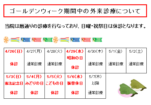 ゴールデンウィーク期間中の外来診療について